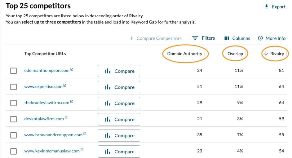 And in seconds, you’ll be given a list of the top 25 competitors for that domain: