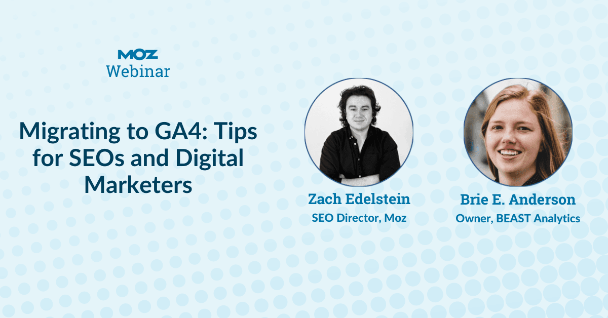 - Zach Edelstein, SEO Director, Moz (Zach is a relatively new addition to the Moz team. He has a decade of SEO and marketing analytics experience, working with digitally-focused brands of all sizes. He is passionate about using data to help companies develop their SEO strategies, and is a Google Analytics power user.)